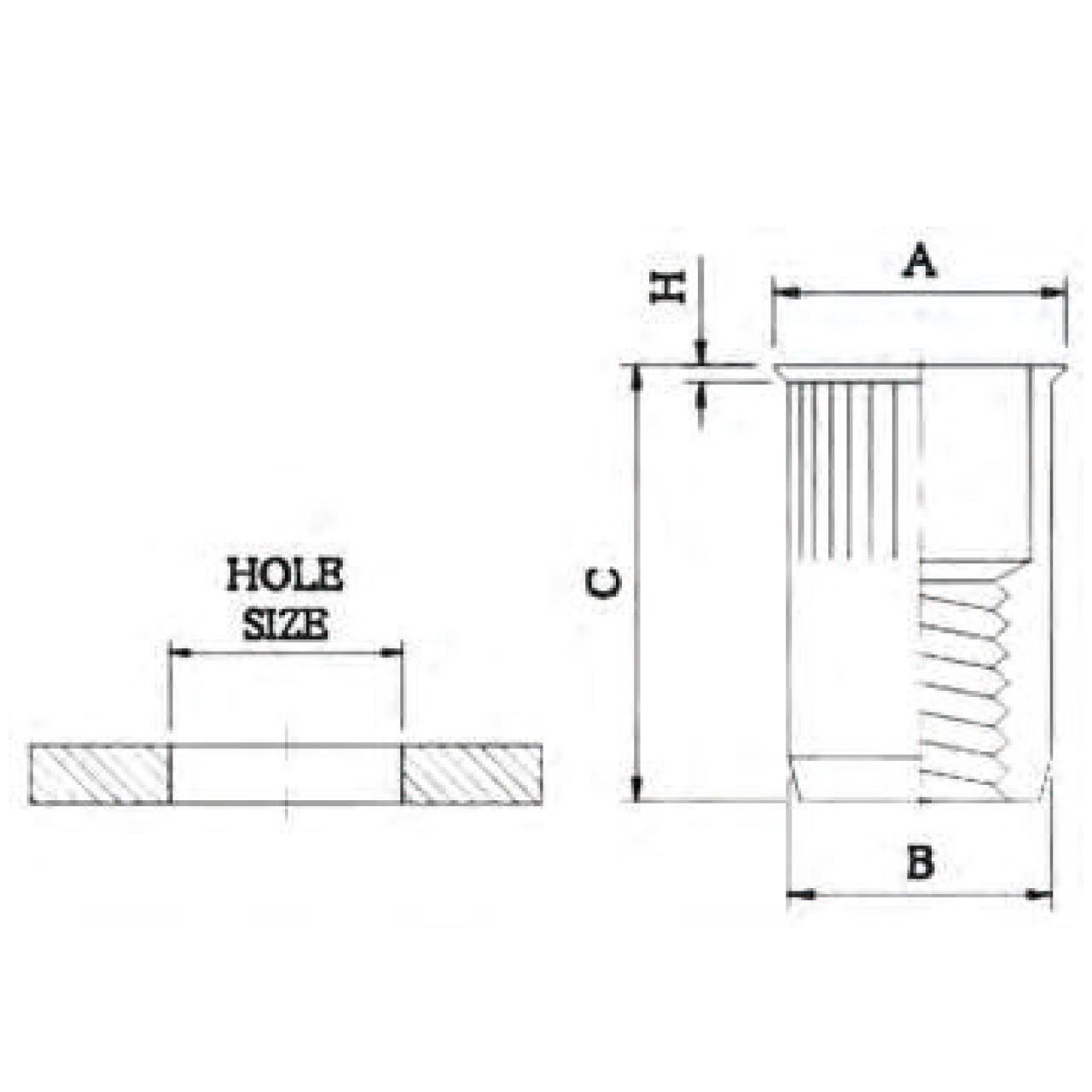 | PART NO. | THREAD SIZE | GRIP RANGE | HOLE SIZE+0.1 | A±0.3 | B max | C±0.3 | H±0.2 |